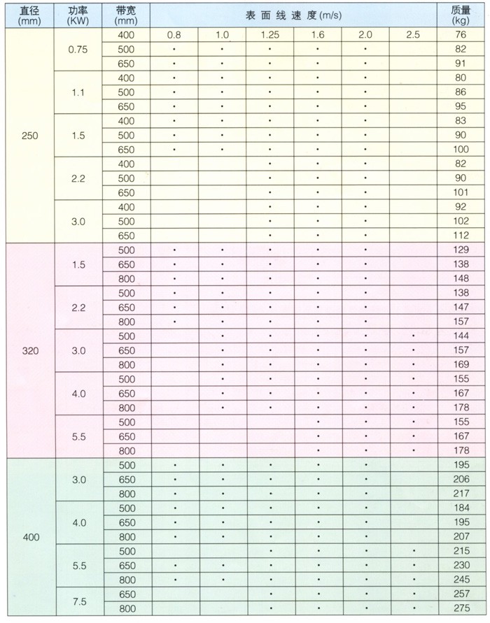 DY1、JYD型油冷式電動(dòng)滾筒系列參數(shù)表