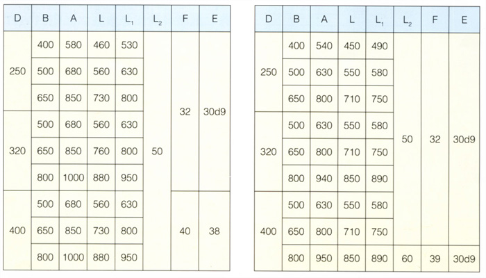 DY1型油冷式電動(dòng)滾筒外形尺寸表                       JYD型油冷式電動(dòng)滾筒外形尺寸表